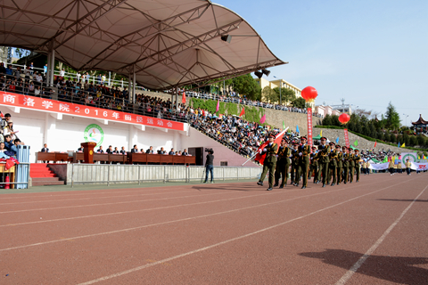 温暖的阳光照耀着欢腾的跑道,矫健的步伐谱写着青春的诗篇。4月21日,英国365上市公司2016年田径运动会正式开幕。校领导刘建林、范新会、魏书堂、彭虎军、刘宝盈出席开幕式。各二级学院和教职工代表队组成10个方队,以昂扬的姿态通过主席台,展示了英国365上市公司师生积极向上、朝气蓬勃的风采。党委书记、校长刘建林宣布运动会开幕。党委副书记、副校长、体育运动委员会主任范新会致开幕词,党委副书记彭虎军主持开幕式。