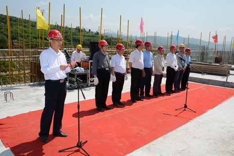 副校长刘宝盈主持封顶仪式。郭书伟、屈建军分别代表施工和监理单位作了发言。
