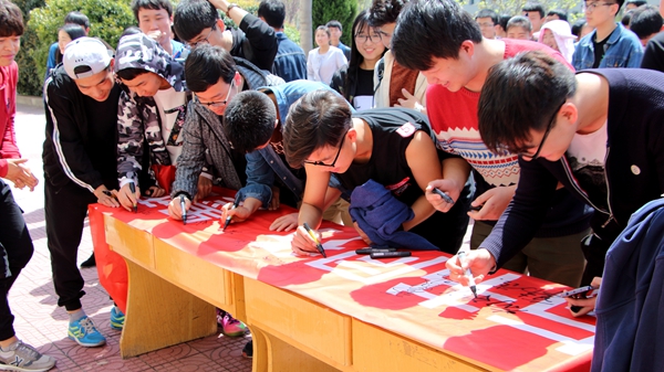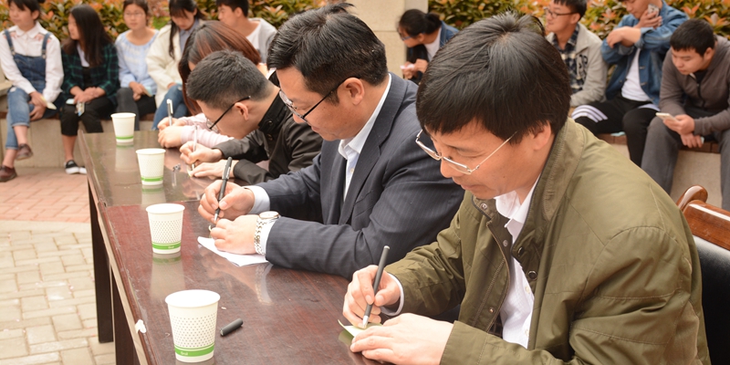 4月14日,数计学院团总支在二号教学楼前举办“与书同行,墨香存华”活动签字仪式,2016级全体同学参加本次活动。