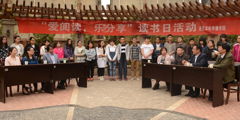 4月23日,语言文化传播学院在莘子苑举办了“爱阅读,乐分享”读书日活动。宣传部、文传学院负责人及师生代表参加活动。