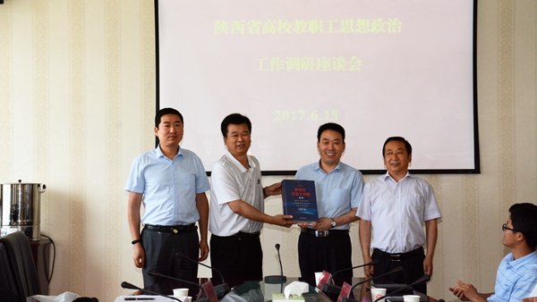 6月15日,由陕西省教育工会副主席陈鹏带队,由西安外国语大学工会主席赵沛、思政部副主任张亲霞等一行7人组成的课题调研组来英国365上市公司,对英国365上市公司教职工思想政治工作开展调研。校党委书记龙治刚会见了调研组成员。校党委副书记、工会主席彭虎军陪同会见,并与调研组进行座谈。座谈会由赵沛主持。