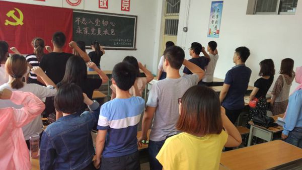 ——生物学院学生第三党支部举办主题为“不忘入党初心,永葆党员本色”的毕业生党员再教育活动。全体毕业生党员面对党旗重温入党誓词,坚定理想信念。低年级党员逐一为毕业生党员送上毕业寄语,表达了自己对学长学姐的感恩之情和真挚祝福。支部书记侯小洁表达了对毕业生党员的殷切期望和美好祝愿,希望每一名毕业生党员能够铭记誓言,不忘入党初心,永葆党员本色,为实现自我价值、实现伟大“中国梦”而不懈努力!