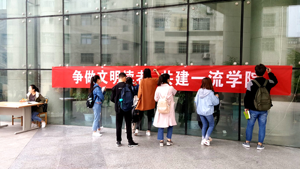 4月以来,图书馆开展了以“让读书成为习惯,让书香溢满商院”为主题的读书月系列活动。4月23日,举行了“争做文明读者,共建一流学院”主题签名活动。