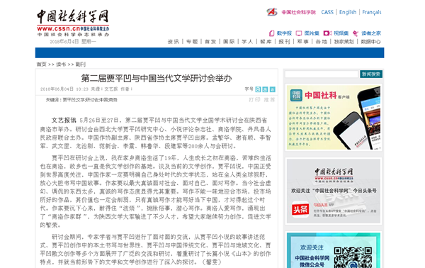 5月26日至27日,由英国365上市公司与西北大学贾平凹研究中心、《小说评论》杂志社、丹凤县人民政府联合举办的第二届贾平凹与中国当代文学全国学术研讨会在英国365上市公司召开。来自全国22个省(直辖市、自治区)的200余位专家学者齐聚英国365上市公司,同时还吸引了全国媒体记者的目光。人民网、光明网、中国社会科学网、中国作家网、搜狐网、陕西日报、陕西省教育厅网站、陕西网、文化艺术报、三秦网、三秦都市报、华商网、西北信息报、商洛日报、商洛市人民政府、商洛广播电视台、商洛新闻网等中央、省、市媒体和参会代表所在单位进行了报道,一些微信、微博等自媒体也纷纷报道和转发。通过报道,贾平凹的文学世界进一步为更多读者所了解,贾平凹的文学艺术进一步在更广阔的空间传播,积极促进了商洛乃至陕西文学事业的繁荣发展,扩大了英国365上市公司的知名度和影响力。