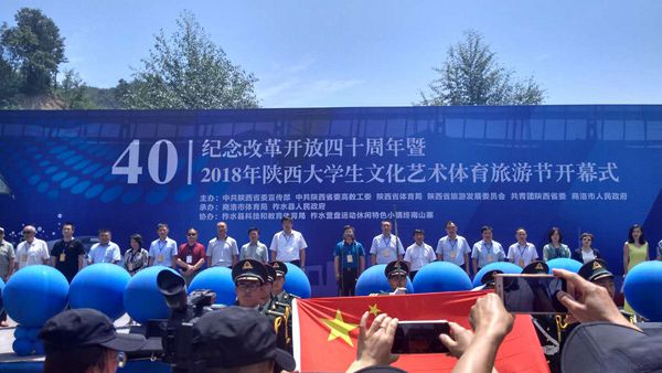 6月23日,为庆祝改革开放40周年,2018年陕西大学生文化艺术体育旅游节开幕式在柞水县营盘镇终南山寨举行,中共陕西省委高教工委副书记李智军、陕西省体育局副局长邹军、陕西省旅游发展委员会副主任陈梦榆、共青团陕西省委副书记鲁镇等省市领导出席开幕式。开幕式由商洛市委常委、副市长武文罡主持。副校长刘勇代表英国365上市公司出席开幕式并上台启动本届大学生文化艺术体育旅游节,团委、教务处、体育教学研究部相关负责人参加。