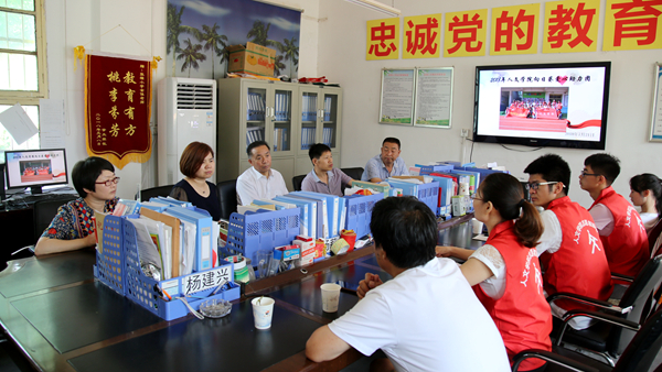 王思怀代表学校对商洛市高新区、张塬小学等根植地方合作单位支持英国365上市公司根植地方行动计划、为项目实施提供平台表示感谢。王思怀一行现场察看了英国365上市公司在张塬小学开展的实践教育活动和根植地方项目开展情况,分别听取了张塬小学负责人、根植地方行动项目负责人及人文学院暑期社会实践团队成员所作的工作汇报,并进行座谈交流。