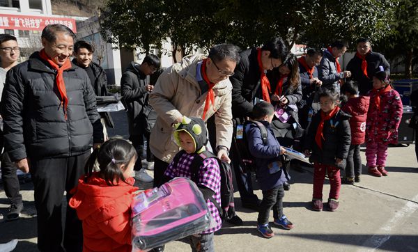 活动中,领导嘉宾为85名学生送去了近万元的书包文具、科学实验百宝箱、科普知识图书、飞机模型、学生宿舍架子床等爱心物资,龙治刚还为“启智实验室”进行授牌。