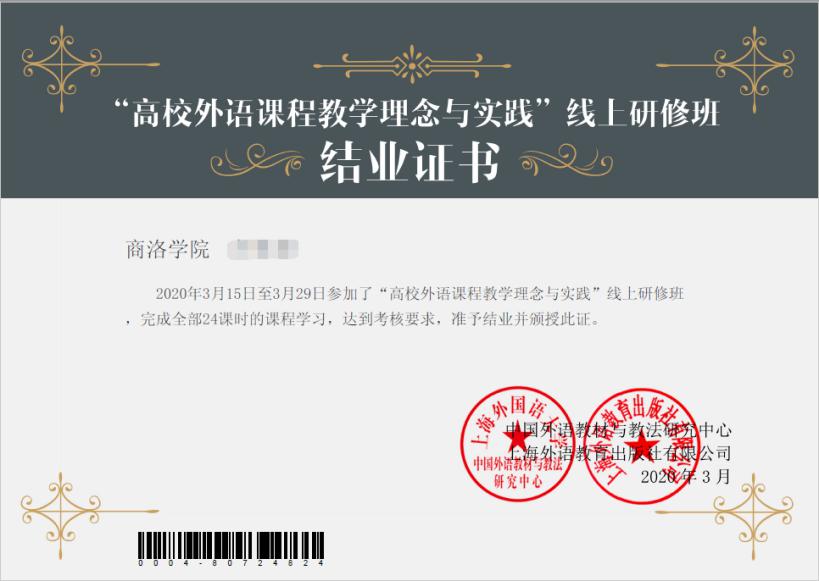 ——教学水平稳步提升。提升教学基本功是教研室活动的主要内容。为了最大限度降低疫情对教研活动的影响,人文学院组织教师参加了测试与外语教学、金课建设、课堂教学设计、智慧教学、线上线下混合式教学、教学示范等6个方面18场在线直播讲座。到目前为止,已有16名教师获得线上研修班结业证书。