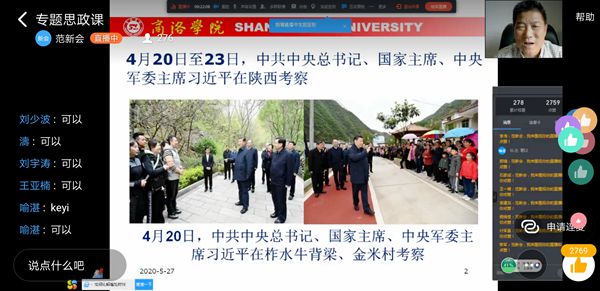 整堂思政课持续了近两个小时,师生反响热烈,评论区里各种点赞、学习、加油此起彼伏。“老师讲的真好!”“点赞校长”“向习大大学习”“成长于大秦岭脚下的我太骄傲了”“追赶超越也有我”“小木耳大产业,习近平总书记太暖心”“‘西迁精神’最令我印象深刻。”……直播间的弹幕不停地在滚动,校领导们深刻又生动的讲解不断吸引新的师生加入收看,开播一小时后,师生点赞数已过5万。还有同学留言说,家人朋友也与自己一同收看了这堂生动的“网络思政课”。