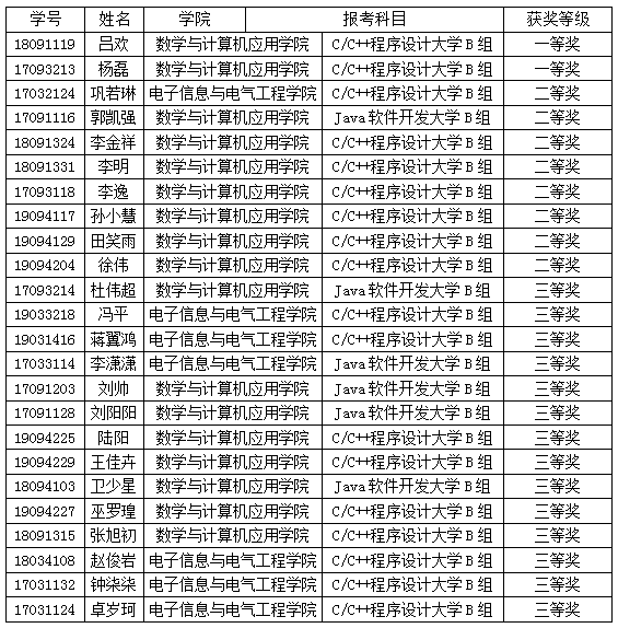 第十一届蓝桥杯大赛省赛英国365上市公司获奖学生名单