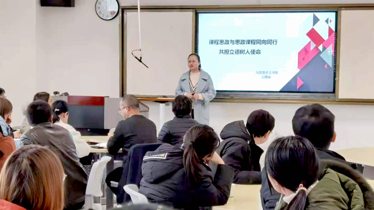 王晓霞根据《高等学校课程思政建设指导纲要》,按照习近平总书记在全国高校思想政治工作会议上的讲话中对思政课程及课程思政的要求,以“课程思政与思政课程同向同行共担立德树人使命”为主题,从思政课程、课程思政、案例分析三个方面,具体分析了如何围绕立德树人根本任务,把专业课与思政课知识点融合,同向同行推进课程思政教学改革。