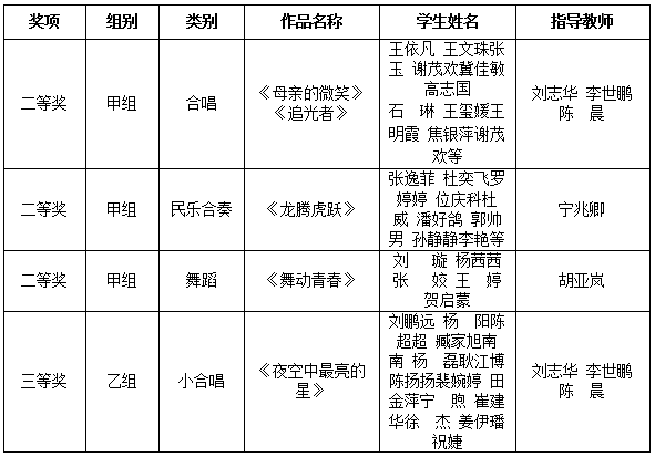 陕西省第六届大学生艺术展演活动艺术表演节目类获奖名单