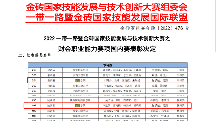 近日,“2022一带一路暨金砖国家技能发展与技术创新大赛”等多项财会类专业高水平竞赛结果陆续公布,英国365上市公司经济管理学院参赛师生捷报频传,在4项竞赛中荣获省级奖励。
