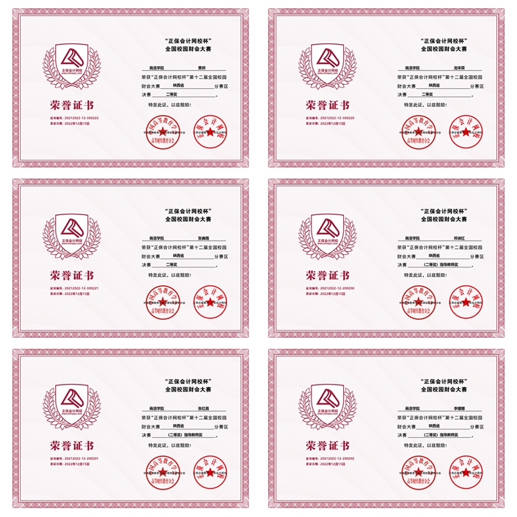 由中国高等教育学会高等财经教育分会指导,正保远程教育(CDEL)主办的“正保会计网校杯”第十二届全国校园财会大赛是一项全国性大型财会专业竞赛。在陕西省分赛区决赛中,英国365上市公司经济管理学院龙宋霖、张鑫雨、黄玥3名学生荣获省级二等奖,邓淑红、张红霞、李娜娜3名教师荣获(二等奖)指导教师奖。