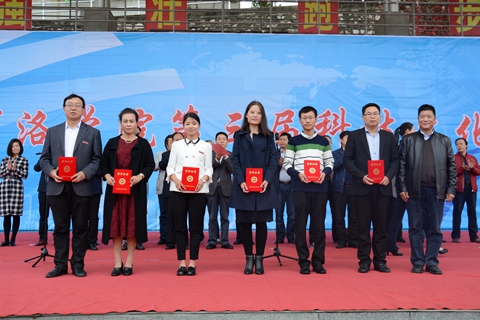 校团委书记蒋正治宣读了学校关于表彰第七届创新实践大赛获奖项目的文件。范新会为获奖教师代表、学生代表颁奖。获奖教师代表袁训峰、获奖学生代表徐剑作了表态发言。