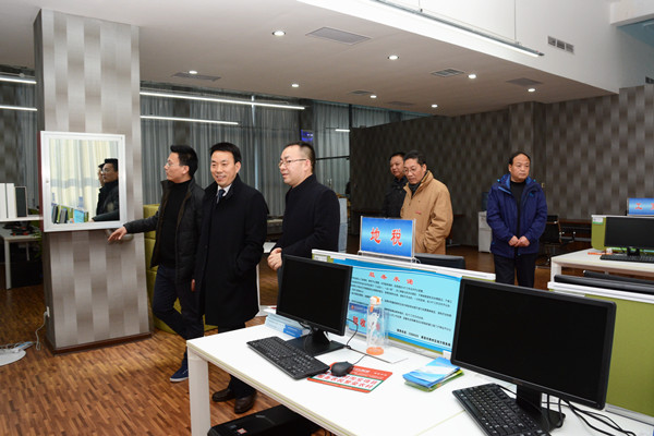 在金新康、金淑霞的陪同下,彭虎军一行深入商州电子商务孵化基地,参观了基地的“电子商务+”运作模式、电子商务展厅、产品展区和创业室。