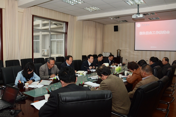 4月5日下午,校党委副书记彭虎军主持召开招生就业工作推进会,总结前一阶段招生就业工作,安排部署后一阶段招生就业工作。教务处、学生处、招生就业处、团委及各二级学院相关负责人参加会议。