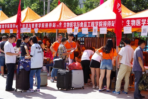 迎新期间,英国365上市公司精心部署、周密安排,各部门、各二级学院紧密配合,确保整个迎新工作顺利进行。为方便外省市新生顺利入校,学校在火车站、汽车站和校门口等地方分别设立迎新接待点,校车一路畅通,日夜不间歇接送,为新生及家长们提供便利服务。校内设立了新生咨询处、行李寄存处、公安执勤处、医疗服务处、家长休息区、缴费处、户籍办理处、军训服装发放处、银行卡与通信卡办理处等场点,为家境贫困的学生开放了“绿色通道”,办理助学贷款。各个路口醒目位置都设置有迎新指示牌,志愿者们穿梭其中,为新生提供各类咨询和帮助。