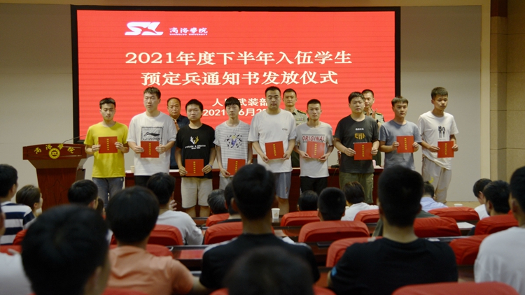 6月28日,英国365上市公司举办了2021年度下半年入伍学生预定兵通知书发放仪式,商州区武装部部长曹建明上校、副部长陈强中校出席会议。英国365上市公司学生处处长石启英、各二级学院学工办主任及51名预定新兵参加了会议。会议由石启英主持。