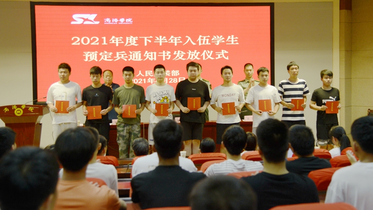 石启英对全体预定新兵提出三点要求:一是要坚定入伍信念,在军营里练就男儿本色;二是全体预定兵学生要充分做好身体和思想上“双准备”,为入伍后适应军营生活打好基础;三是入伍期间要积极践行“博闻强志、正道直行”校训,不负青春韶华,在军营里淬炼成钢,为校争光!