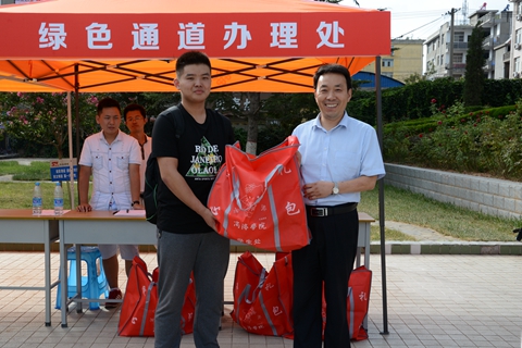 怀着对大学生活的向往之情,9月1日下午已有不少新生及家长提前来到学校,在大学生志愿者的带领下,办理入学手续。电信学院一名来自辽宁省朝阳市的2016级新生因为生源地贷款尚未办理到位,学校按照相关规定为他开通了“绿色通道”。彭虎军亲自向他赠送了爱心礼包,并勉励他专心学习,不要有后顾之忧。