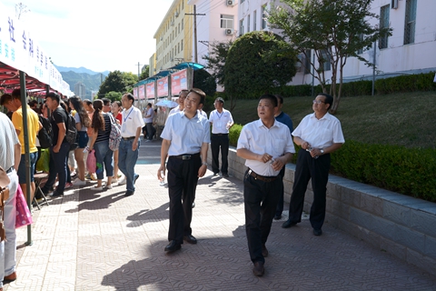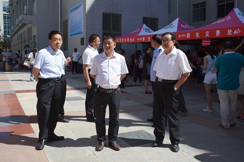 在党政办公室、学生处、招生就业处、保卫处、后勤保障处等相关职能部门负责人的陪同下,范新会一行深入新生接待处、缴费处、户籍办理处、军训服装发放处、学生公寓、银行卡与通信卡办理处等场点,详细检查了各个场点迎新工作部署与开展情况。经过检查,校领导对接待新生的各项准备工作表示满意,并要求各单位通力合作,积极主动、热情周到、扎实细致做好服务工作,让新生及家长能迅速、便捷、舒心地办理入校手续,感受到学校大家庭的温暖。针对迎新期间校内交通调度、卫生清理、志愿者培训等工作,校领导也提出了具体要求。