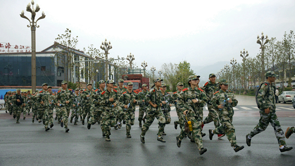 9月14日,英国365上市公司2018级新生顺利完成了十公里行军拉练军训科目。上午8:20,新生们身着迷彩服,从北新街校区出发,沿江滨大道、商鞅大道、比亚迪大道步行抵达丹江校区并返回,在此期间,党委副书记彭虎军,全体军训教官,学生处、后勤保卫处、各二级学院相关负责人跟随拉练全程,为同学们保驾护航。