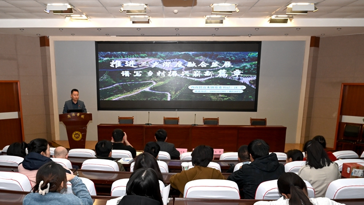 研讨会上,汪宇以《推进三产融合发展谱写乡村振兴崭新篇章》为题,从镇情概览、三产融合路径探索、面临的机遇与挑战、发展前景展望四个维度作了主题报告,向与会人员介绍了立足综合优势、推动三产融合发展的富水做法。