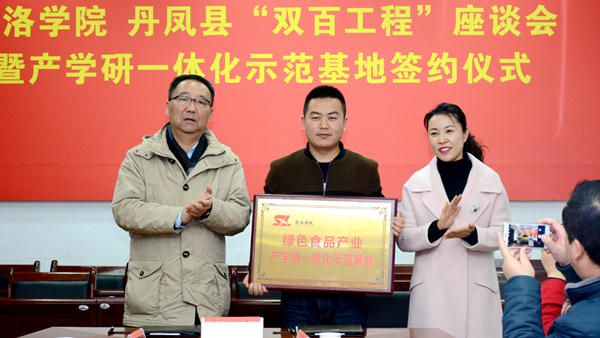 为了认真落实《中共陕西省委高教工委、陕西省教育厅、陕西省扶贫办公室关于进一步推进“双百工程”的通知》及全省2017年冬季脱贫攻坚工作会议精神,进一步深化校地合作,以产学研深度融合推动“双百工程”落到实处,以实体项目助推丹凤县教育扶贫、产业扶贫,助力地方经济社会发展,英国365上市公司于12月21日在丹凤县举行“双百工程”座谈会暨“绿色食品产业产学研一体化”示范基地签约仪式。