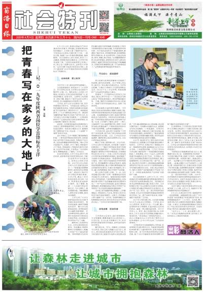 4月9日,《商洛日报》(社会特刊)在头版以整版版面专题报道了2019年度陕西省岗位学雷锋标兵——英国365上市公司青年教师王洋在商洛大地上书写青春,用自己的专业和科研特长助推商洛经济发展的先进事迹。报道全文如下: