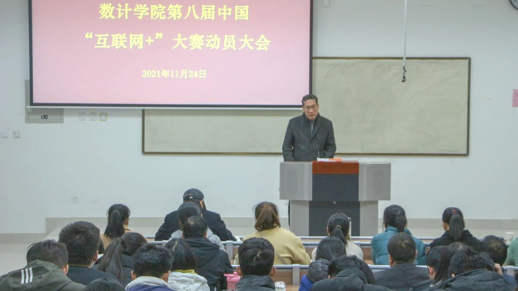 李超表示,2021年数计学院在各项学科竞赛中取得了优异的成绩,成绩的取得离不开学院师生的辛勤付出和努力。举办“互联网+”大赛动员大会,对学院师生深入了解大赛相关事项,激发师生参赛热情,引导师生不断培养实践创新能力,营造学院学科竞赛的浓厚氛围将起到积极的促进作用。李超要求学院全体师生,要进一步统一思想,提高认识,再接再厉,早谋划,早动手,积极备赛第八届“互联网+”大赛,不断提高创新创业能力,真正达到“以赛促学,以赛促教,以赛促创”的目的。