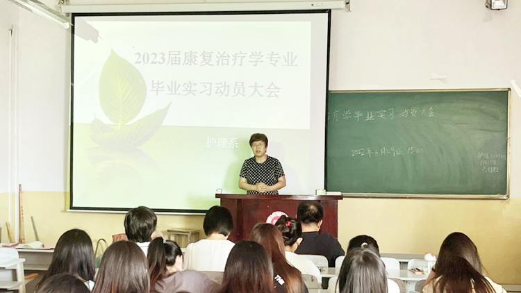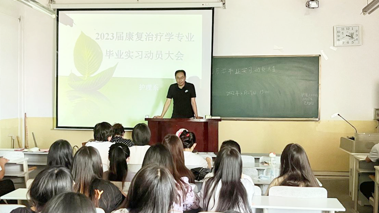 为切实保障2023届康复治疗学专业学生毕业实习工作有序推进,6月28日,健康管理学院召开康复治疗学专业2023届学生毕业实习动员大会。健康管理学院院长郭耀东、党委书记鲁绵茸,学工办负责人、教学秘书、康复治疗学专业全体教师及2023届学生代表参加会议。