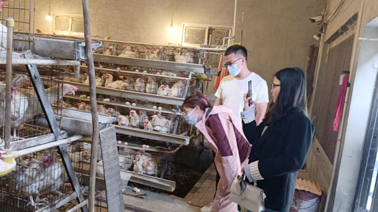 在山阳县军涛畜牧养殖有限公司养鸡场,三位博士对鸡舍的环境、设备运行等情况进行了详细查看,对鸡群的生长状况、健康表现等情况进行了全面分析评估,向工作人员悉心讲解了鸡群科学喂养、饲料调配方法、规范操作、日常消毒、疾病防控等方面的知识,并向工作人员传授了最新的防疫知识和防控技巧。