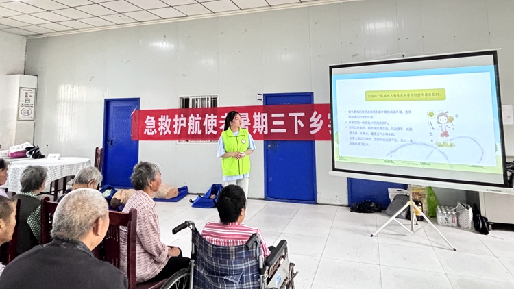 “急救护航使者团”在商洛市百顺山庄老年公寓及东店子小学开展了“社区急救大演练-构建安全生活圈”社会实践活动。实践团成员围绕急救知识讲座、慢性病科普、日常生活保健等主题,通过动画演示、游戏互动及现场模拟等形式,开展了一系列丰富多彩的社区健康宣讲活动,让广大群众懂急救、会急救、敢急救,切实提高群众急救技能水平。通过聆听参与,现场群众在短时间内对心肺复苏、海姆力克急救法、止血包扎等日常急救技能有了一定程度的掌握,为生命健康多提供一份保障。