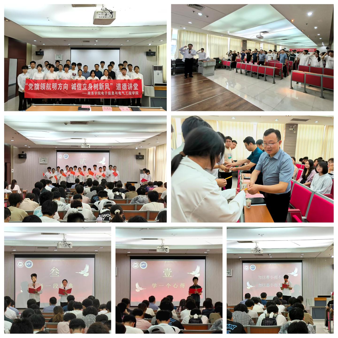 为弘扬诚信美德,筑牢理想信念根基,6月18日,电信学院举办“党旗领航明方向 诚信立身树新风”主题道德讲堂活动。校党委委员、宣传部部长王霄飞,电信学院党委书记袁训锋、院长陈垚,学院全体党支部书记、辅导员、学生代表170余人参加活动。