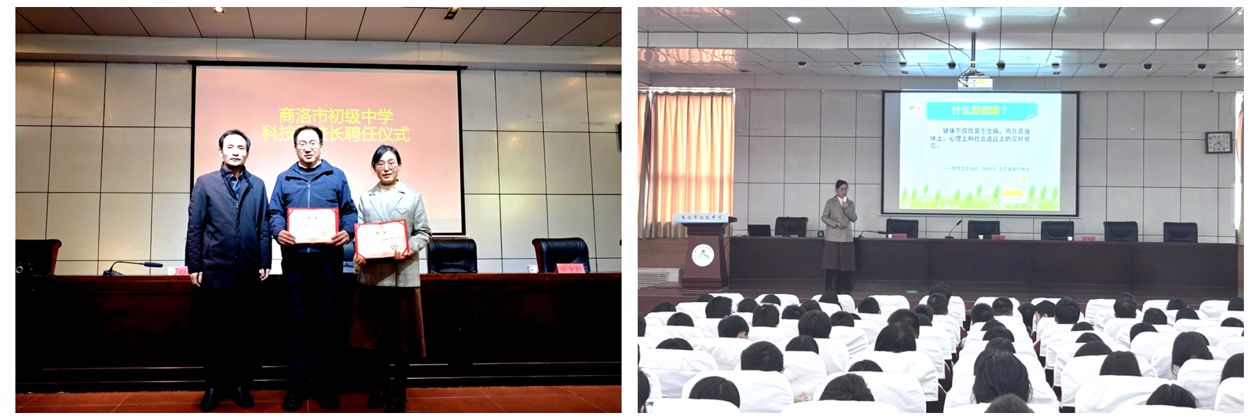 11月19日,应商洛市初级中学邀请,健康管理学院院长郭耀东、公共卫生系教师许飞利前往该校开展“科学管理体重,健康快乐成长”主题教育培训。商洛市初级中学校长倪德博出席活动,并在现场聘任郭耀东为学校科技副校长、许飞利为健康教育指导专家。